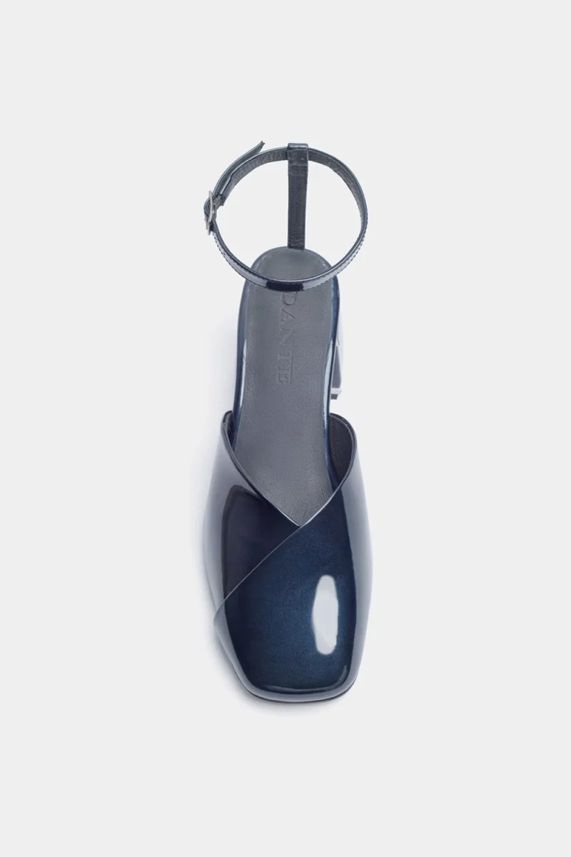 Sandalias tipo mule donde la elegancia de la silueta se construye desde la suavidad y la forma. Elaboradas en piel color azul marino, con un tacón de 5.5 cm que introduce un contraste moderno y sutil. Su diseño cerrado al frente aporta equilibrio visual, mientras envuelven el pie con una sensación delicada y natural, definiendo una silueta femenina y refinada. Una pieza que interpreta la feminidad desde la sencillez y el detalle.