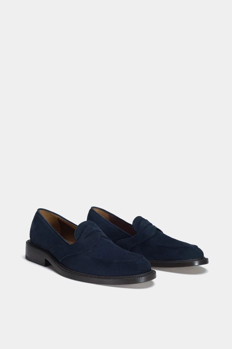 Elaborado en gamuza color azul, aporta una textura suave y un carácter más relajado sin perder sofisticación. Pulido sobre suela de cuero que brinda estructura, durabilidad y un porte distinguido. Su diseño permite calzarlo con facilidad, convirtiéndolo en una opción versátil para acompañar tanto looks formales como estilos más casuales.