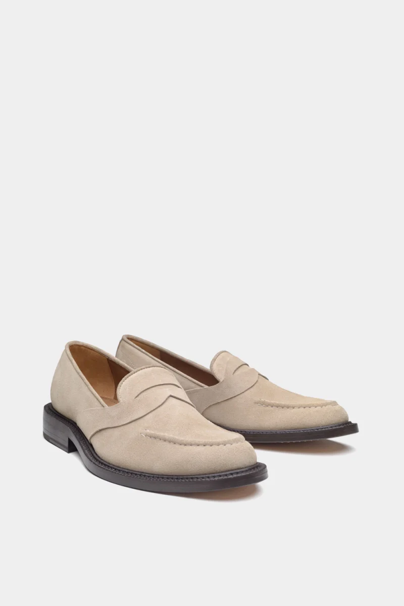 Elaborado en gamuza color hueso, aporta una textura suave y un carácter más relajado sin perder sofisticación. Pulido sobre suela de cuero que brinda estructura, durabilidad y un porte distinguido. Su diseño permite calzarlo con facilidad, convirtiéndolo en una opción versátil para acompañar tanto looks formales como estilos más casuales.